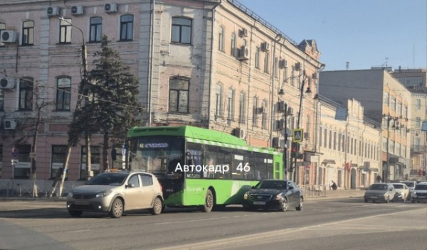 По предварительным данным очевидцев, которые выкладываютфото с места в паблике «Автокадр_46», на улице Запольной городской автобус «Волгабас» стукнул легковую машину, которая затормозила на светофоре.