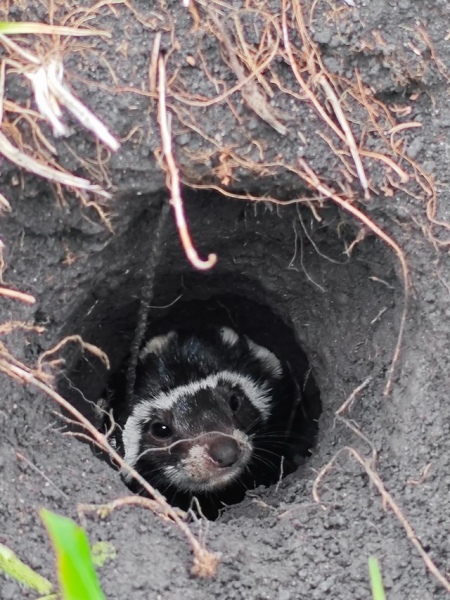 Уникального зверька в Касторенском районе сфотографировала Татьяна Маслихова, в июне 2025 года на прогулке с детьми по пойменному лугу. Перевязка вела себя очень спокойно, не боялась. А когда люди подошли ближе, спряталась в глубокую нору.