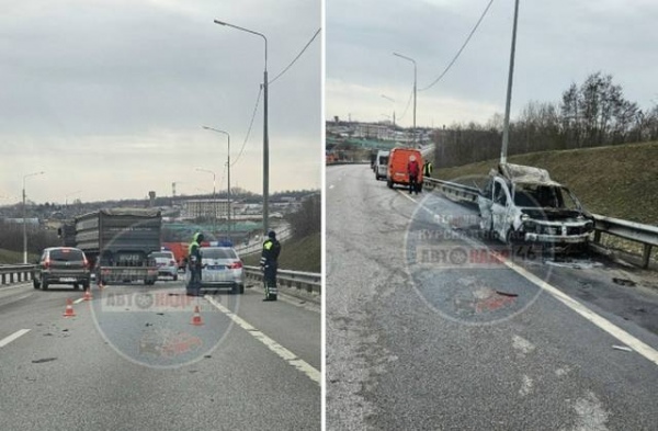 На объездной Курска произошла авария с возгоранием