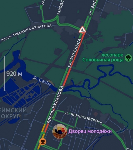 По информации паблика «Курский транспорт» значительно затруднено движение личного и общественного транспорта по проспекту Кулакова и улице Энгельса в направлении центра города.