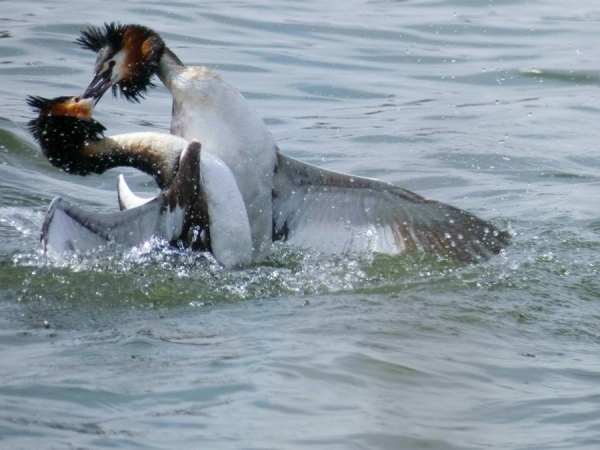 Администратору паблика «Птицы города Курска» Павлу Кудрину удалось заснять момент, пара чомг кружится в страстном танце. «Это могло показаться и стычкой двух самцов — внешне у чомг самцы и самки одинаковы... Крылья хлопают, птицы сшибаются мощно и яростно, вода кипит, брызги фонтаном и веером... Да вот только за секунды до начала они вдвоем мирно плыли рядом, никто не пытался нападать или прогонять. Просто вдруг ускорились, разошлись, сошлись... И после поплыли дальше, точно так же вдвоем. Это не драка, танец», — рассказывает орнитолог-любитель.