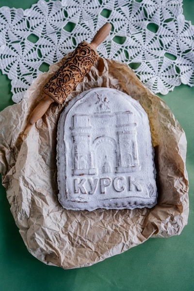 Курянка Ольга Рагулина подарила Макарским курский пряник с изображением Триумфальной арки и глиняную Куряночку — работу кожлянских мастеров.