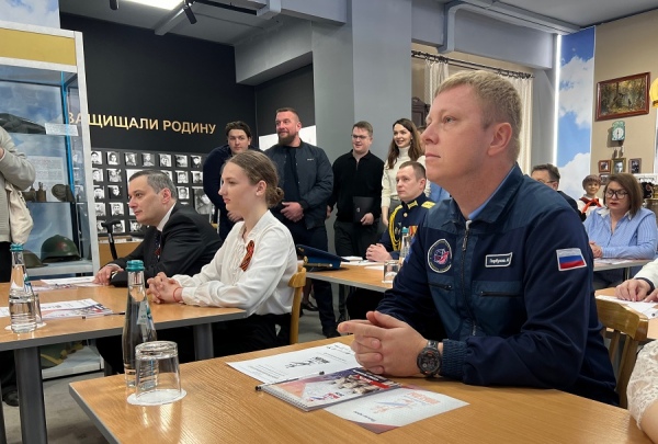 В музее «Юные защитники Родины» за парты сели губернатор Александр Хинштейн и летчик-космонавт, Герой России Александр Горбунов, уроженец Железногорска Курской области.
