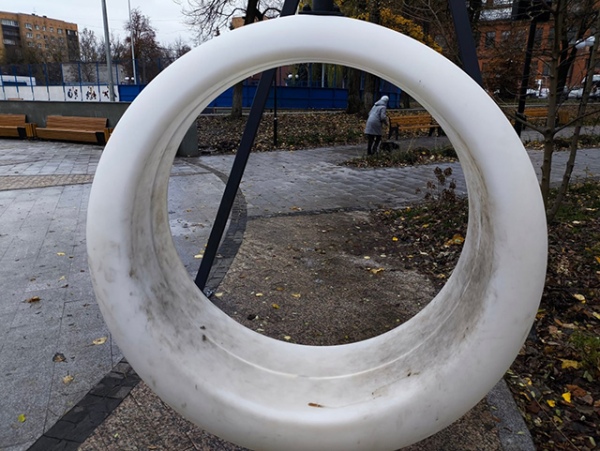 Тем временем в Парке пионеров на улице Перекальского отреставрированные бетонные фигуры животных снова измазаны грязью, испачканы новые качели, на которые забираются с ногами.