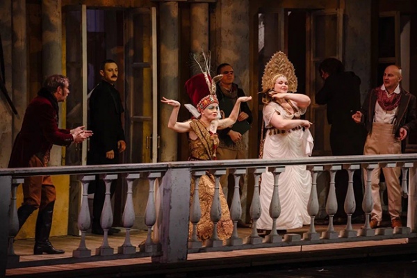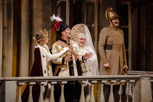 В этой постановке Сергея Газарова Хлестаков не просто плут, а современный хипстер, который летит по жизни легко, словно компьютерную игру проходит, не хочет прикладывать никаких усилий, но желает получить всё и сразу. Это подчеркивает и его костюм – кажется, Хлестакова привели не из трактира XIX века, а из модной кофейни, где он не мог расплатиться за латте. И в этом главная особенность спектакля – гоголевские персонажи существуют вне времени. Жена городничего представляет себя Клеопатрой. Почтмейстер летает по сцене в пуантах. А помещики Добчинский и Бобчинский вдруг оказываются одним человеком с раздвоением личности. Всё это создает ощущение театрального карнавала. Актеры, кажется, сами получают невероятное удовольствие от этой буффонады, и это чувство передается залу.