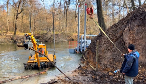 Земснаряд привезли в начале ноября. Вместе с ним приехали специалисты из Ярославля, чтобы собрать судно. Полторы недели назад его спустили на реку. Но работать самостоятельно в условиях запруженной мусором реки земснаряд не может. Вместе с ним спустили на воду экскаватор-амфибию.