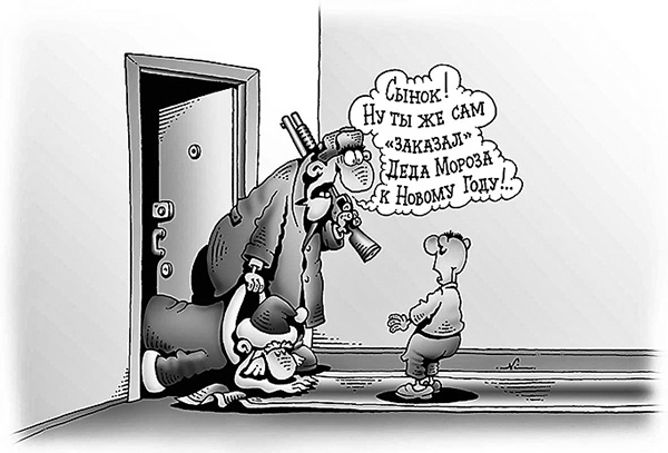 – Ой! Разбил сыночек все подарки... И машинку, и танк, и елку разбил, и все игрушки на елке...
