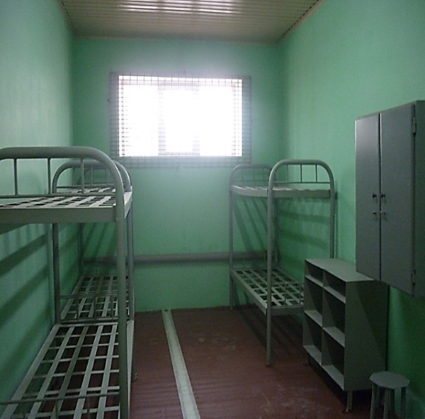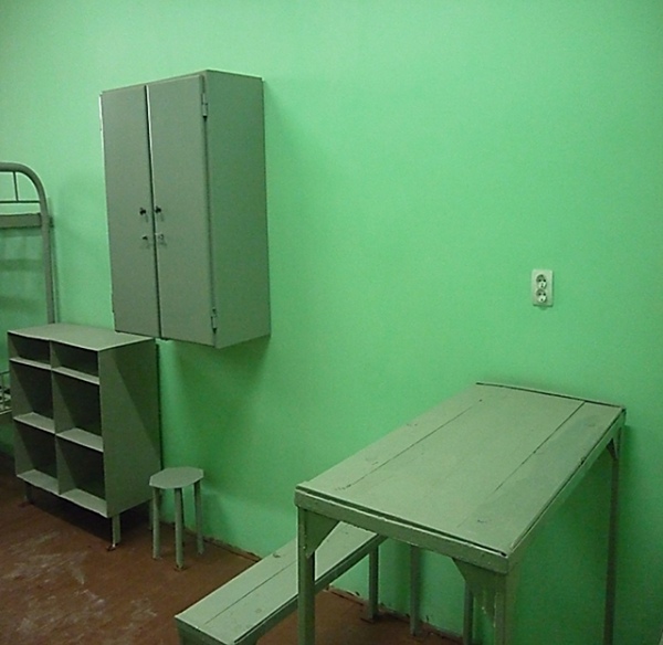 Внутри стандартный набор: двухэтажные кровати, столы со скамейками, шкафы для продуктов, розетки, батареи отопления, тумбочки для телевизоров. А вот самих телевизоров арестантам не положено, их устанавливают только в камерах для несовершеннолетних.