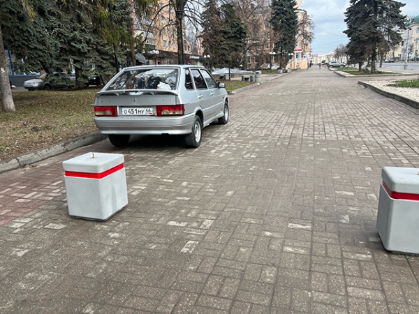 С незаконной парковкой в центре Курска борются бетонными кубами