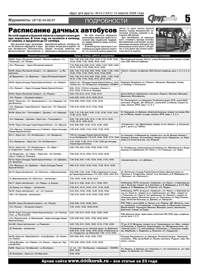 Расписание дачных автобусов в Курске