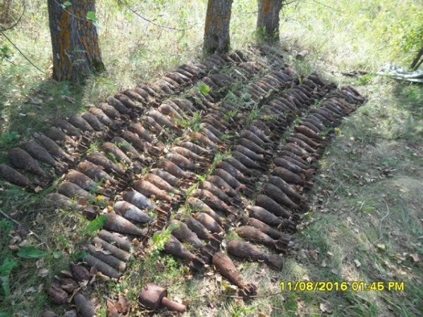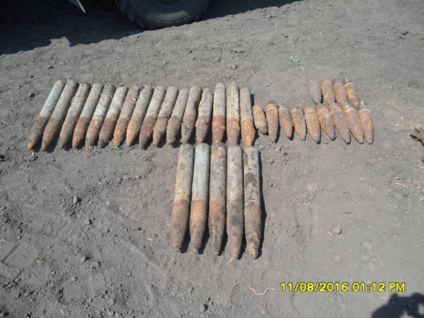 Курская область. В степи нашли десятки снарядов и мин