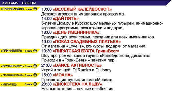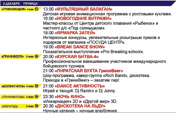 Курск. МегаГРИНН приглашает весело и с пользой провести будние и выходные дни!