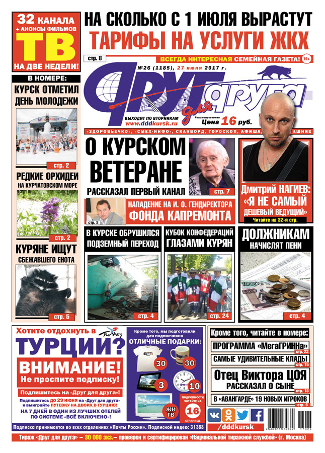 Во вторник, 27 июня, вышел в свет свежий номер газеты «Друг для друга» — одного из самых популярных и читаемых печатных изданий Курской области.