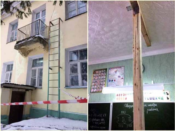 В августе школу проверила комиссия, нареканий не было, занятия начались вовремя. Но уже через несколько дней директор школы, совершая традиционный утренний обход, заметила неладное. Декоративные потолочные плитки в одном из кабинетов на втором этаже неестественно выгнулись. Надежды на то, что подвел клей, не оправдались. Деформировалось само потолочное перекрытие. Директор забила тревогу.