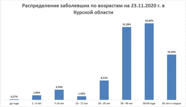 По данным на 23 ноября регионе зарегистрировано 14186 подтвержденных случаев заболевания коронавирусом. Оперштаб Курской области опубликовал подробную статистику, где отражено, как число заболевших распределилось по полу и по возрасту.
