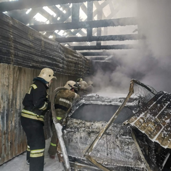 В боксе горел автомобиль «HAVAL», произошло частичное обрушение кровли гаража. Пострадали 21-летний парень и 48-летний мужчина.