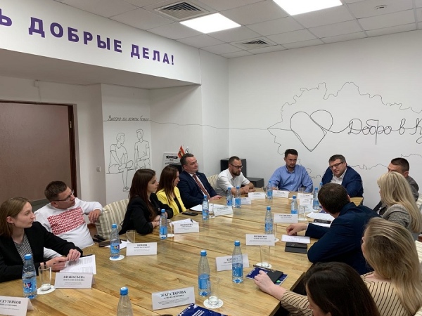 Рабочая программа визита продолжилась в областном Дворце молодёжи. Там прошёл круглый стол «Молодёжные проекты: новые возможности для эффективного межрегионального взаимодействия». В нём приняли участие заместитель председателя Курской областной Думы Константин Комков, председатель областного комитета молодёжной политики Владимир Гребёнкин, курские парламентарии Вячеслав Хлопонин и Екатерина Голованова, лидеры общественного мнения и молодёжных организаций Курской области, представители молодёжного парламента при Курской областной Думе и Совета молодых депутатов региона.