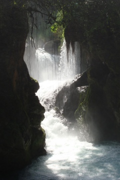 Пробираясь сквозь папоротники и лианы, плантации сахарного тростника и банановые рощи, мы вышли к «Мосту бога». Эрозия сформировала в скале огромную прореху, и теперь вода обрушивается с огромной высоты вниз, образуя у подножия живописную голубую лагуну. До темноты удалось найти еще несколько водопадов и развалины старого завода.