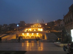 Еще одна достопримечательность Еревана – Большой Каскад. Эта монументальная система лестниц на склоне горы насчитывает более 500 ступенек, соединяя лежащий в низине центр города и жилой массив высоко в горах. Впрочем, совсем необязательно взбираться наверх пешком. Между ярусов Каскада, где располагаются концертные залы, музеи, кафе, фонтаны и причудливые скульптуры, работают эскалаторы.