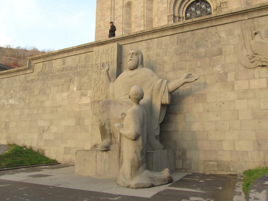 Следующий пункт программы – посещение Мемориала жертв геноцида армян – Цицернакаберд. В следующем году исполнится 100 лет трагическим событиям. Дата 24 апреля 1915-го занимает особое место в истории не только геноцида армян, но этого народа в целом. Именно в тот день в Константинополе начались массовые аресты армянской интеллектуальной, религиозной, экономической и политической элиты, что привело к полному уничтожению целой плеяды виднейших деятелей культуры. С этого началось полномасштабное уничтожение армянской элиты по всей Османской империи. В течение нескольких недель в одном только Константинополе было арестовано около 800 армян, из которых мало кто остался в живых. В числе тех, кого арестовали, был великий армянский композитор и музыковед Комитас. Став свидетелем зверского уничтожения цвета своей нации в 1915 году, он сошел с ума. Его смогли тайно вывезти в Европу. Долгих 20 лет Комитас провел в психиатрической клинике Парижа, где и скончался в 1935-м, так и не оправившись от потрясения и не произнеся за два десятка лет ни единого слова.