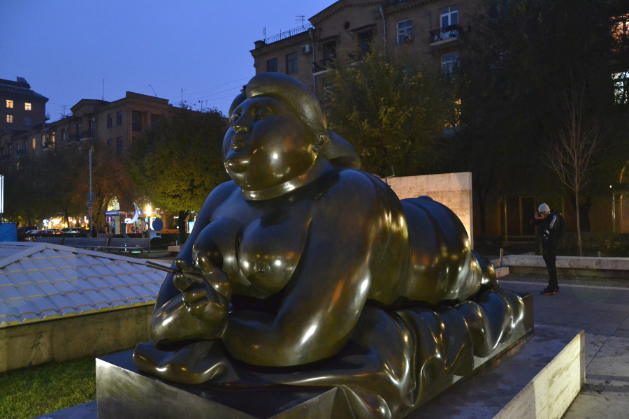 У подножия Каскада находится парк скульптур. Это настоящий музей под открытым небом. «Стоимость некоторых скульптур превышает миллион долларов, – видя наш интерес, замечает Жанна. – Благодаря армянским бизнесменам, живущим в Америке и Европе, у нас появилась такая площадь современного искусства». Пожалуй, самой любимой у туристов стала скульптура дородной дамы, возлегающей в соблазнительной позе. Пышные округлые формы барышни притягивают мужские взгляды и... руки. Но стоит дотронуться до произведения колумбийца Фернандо Ботеро – одного из самых дорогих скульпторов в мире, – как рядом вырастает охранник: «Смотреть можно. Трогать нельзя!»