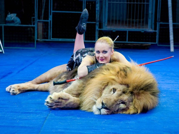 Гвоздь программы – аттракцион «В созвездии льва», режиссером которого выступил именитый Мстислав Запашный. В клетке с шестью львами дрессировщики Ольга Борисова и Алексей Макаренко. Хищники покорны, как кошки, и выполняют все команды. Трюки уникальны, их не встретишь в других программах: дрессировщица делает шпагат на спинах двух животных, львы ходят по натянутым канатам, подают лапу, «дарят» цветок, целуют своих наставников.