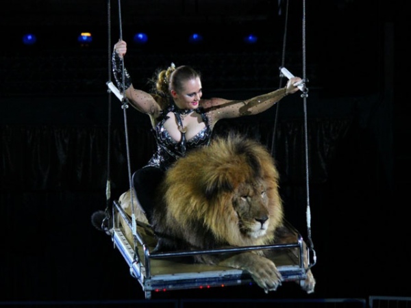 Как финал – «полет» под куполом цирка: четвероногого сажают в специальную тележку, вместе с наставником лев взмывает вверх, секунду-другую с опаской смотрит вниз, а затем красуется перед публикой. Что тут еще скажешь: царь зверей!