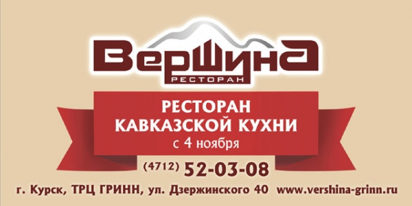 4 ноября, в День народного единства, в торгово-развлекательном центре «ГРИНН» на улице Дзержинского состоялось праздничное открытие ресторана кавказской кухни «Вершина». Многочисленные гости пришли, чтобы почувствовать новое дыхание городской жизни и приятного времяпрепровождения, насладиться вкусной едой. Все столики были заняты! Ожидания посетителей оправдались сполна, как и было обещано!