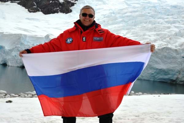 Перед тем как окончательно покинуть Антарктиду, я поднялся по языку ледника и попросил спутников сфотографировать меня с российским флагом на память. Скоро будет отмечаться 200-летие открытия этого континента экспедицией под руководством Беллинсгаузена и Лазарева на шлюпах «Восток» и «Мирный». Уже имеется поручение Президента России Владимира Путина от 20.10.2015 №Пр-2156 о проведении в 2020 году Года Антарктиды.