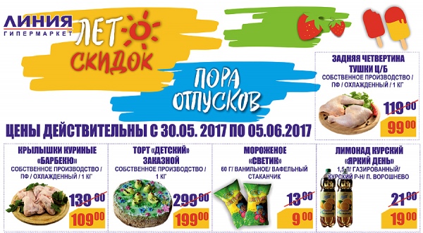 «ЛИНИЯ» хороша для семейного кошелька! Лето СКИДОК в гипермаркетах «ЛИНИЯ»! АКЦИЯ!