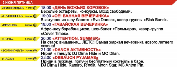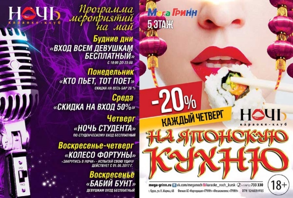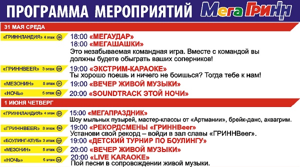 ПОЛНАЯ ПРОГРАММА МЕРОПРИЯТИЙ, АКЦИЙ И КОНЦЕРТОВ В «МегаГРИННе»