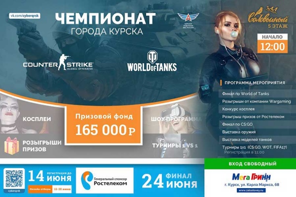 24 июня в Конференц-банкетном зале «Соловьиный» состоится Чемпионат города Курска по WOT и CS GO