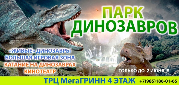 Парк с динозаврами юрского периода, посещение по времени не ограничено! На динозаврах можно кататься, фотографироваться!