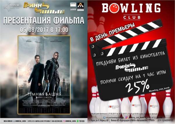 5 августа состоится презентация фильма «ТЕМНАЯ БАШНЯ» (18+). Начало в 17.00. Не пропустите!