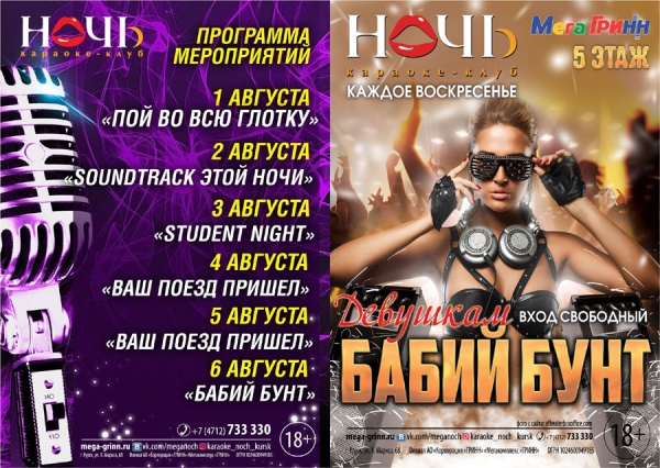 Караоке-клуб «НОЧЬ» — отличное место для веселого и душевного отдыха в Курске, где можно попеть караоке, пообщаться с друзьями и зажечь на танцполе!