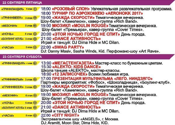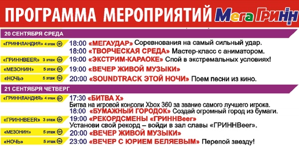 ПОЛНАЯ ПРОГРАММА МЕРОПРИЯТИЙ, АКЦИЙ И КОНЦЕРТОВ В «МегаГРИННе»