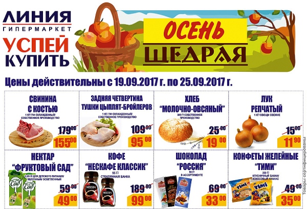 В тему: ЩЕДРАЯ ОСЕНЬ в гипермаркетах «ЛИНИЯ»! ВЫИГРАЙТЕ 200 000 рублей! Товары для любой семьи и на любой кошелек!