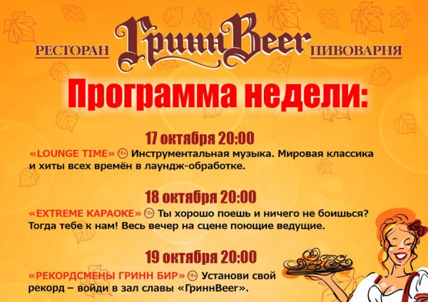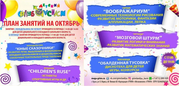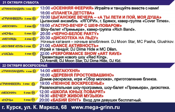 Курск. «МегаГРИНН» приглашает весело и с пользой провести БУДНИЕ и ВЫХОДНЫЕ ДНИ! Программа мероприятий и КОНЦЕРТОВ!