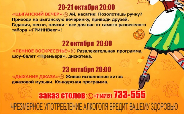 В эти выходные 20 и 21 октября в ресторане-пивоварне «ГРИННBeer» собирается веселый табор на цыганскую вечеринку с гаданиями, песнями и плясками!