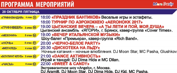 ПОЛНАЯ ПРОГРАММА МЕРОПРИЯТИЙ, АКЦИЙ И КОНЦЕРТОВ В «МегаГРИННе»