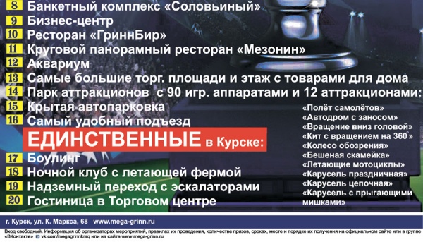 Многофункциональный торгово-развлекательный, семейно-досуговый, «Мегакомплекс «ГРИНН» расположен в центральной части города, на пересечении основных транспортных маршрутов.