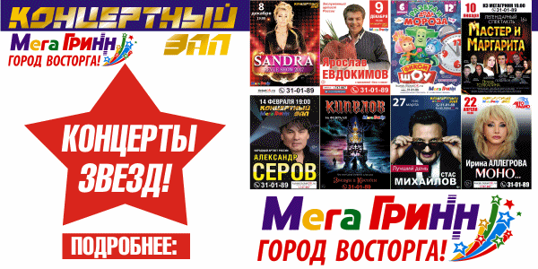 ПОЛНАЯ ПРОГРАММА МЕРОПРИЯТИЙ, АКЦИЙ И КОНЦЕРТОВ В «МегаГРИННе»