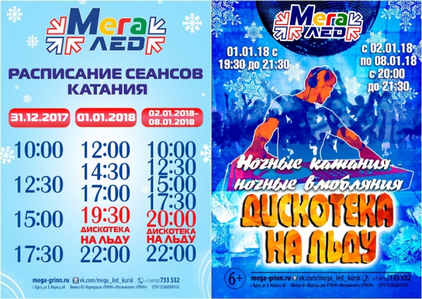 С 31.12.17 — 08.01.18 на ледовой арене «МегаЛЁД» установлено новое НОВОГОДНЕЕ расписание!