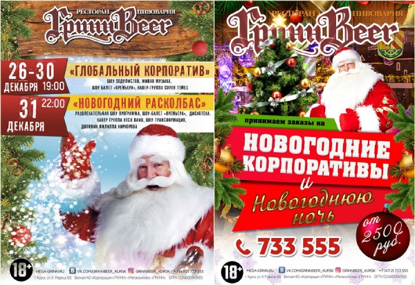 Курск. «МегаГРИНН» приглашает весело и с пользой провести НОВОГОДНИЕ ПРАЗДНИКИ!!! Программа мероприятий и КОНЦЕРТОВ!