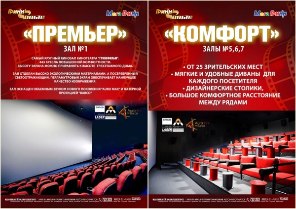 Первый в Европе и единственный в мире уникальный, мощный девятизальный кинотеатр «ГРИННФИЛЬМ» с лазерной проекцией и полностью объемным звуком!