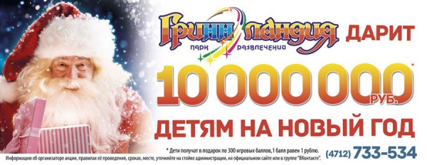«ГРИННЛАНДИЯ» дарит детям 10 000 000 рублей на Новый год