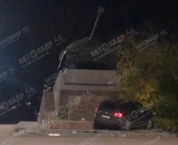 Как сообщили в УГИБДД по Курской области, 33-летний мужчина на автомобиле «Фольксваген Туарег» не справился с управлением, машина въехала в постамент, на котором установлен танк ИС-3.