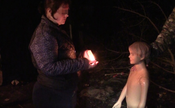 Курянка добавляет, что сначала хотела вылить жидкость на дрова. Затем показывает на манекене, как облила мальчика из пластиковой канистры, по ее словам, не более 200 миллилитров бензина попали ему на голову и одежду. Малыш не пытался убежать. Затем стала поджигать спички.